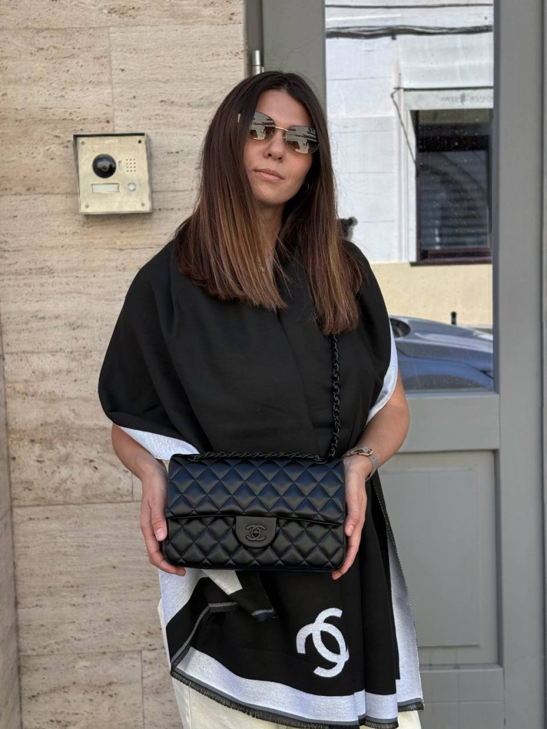 Сумочка, окуляри та палантин є в наявності